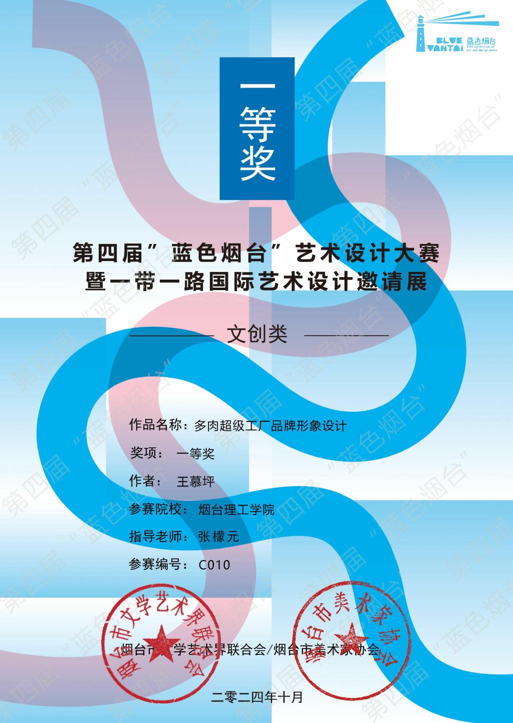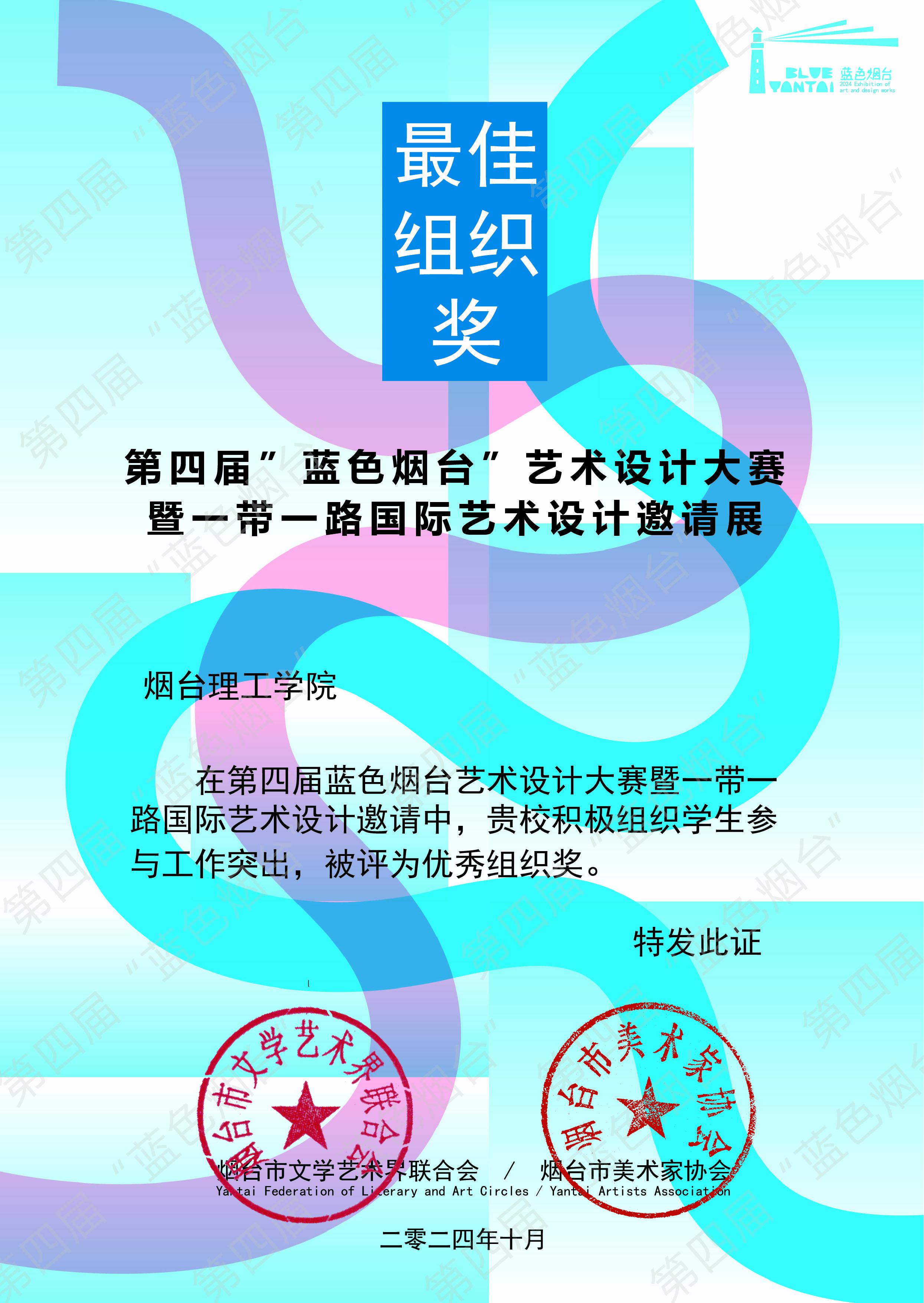 11月2日,第四届“蓝色烟台”艺术设计大赛暨一带一路国际艺术设计邀请展圆满落幕。本次大赛由烟台市文学艺术界联合会主办,烟台市美术家协会、烟台市美术家协会设计艺委会、烟台胶东传播文化有限公司、烟台城市美术馆共同承办,烟台理工学院建筑工程学院积极参与。建筑工程学院参赛人员获多个奖项。