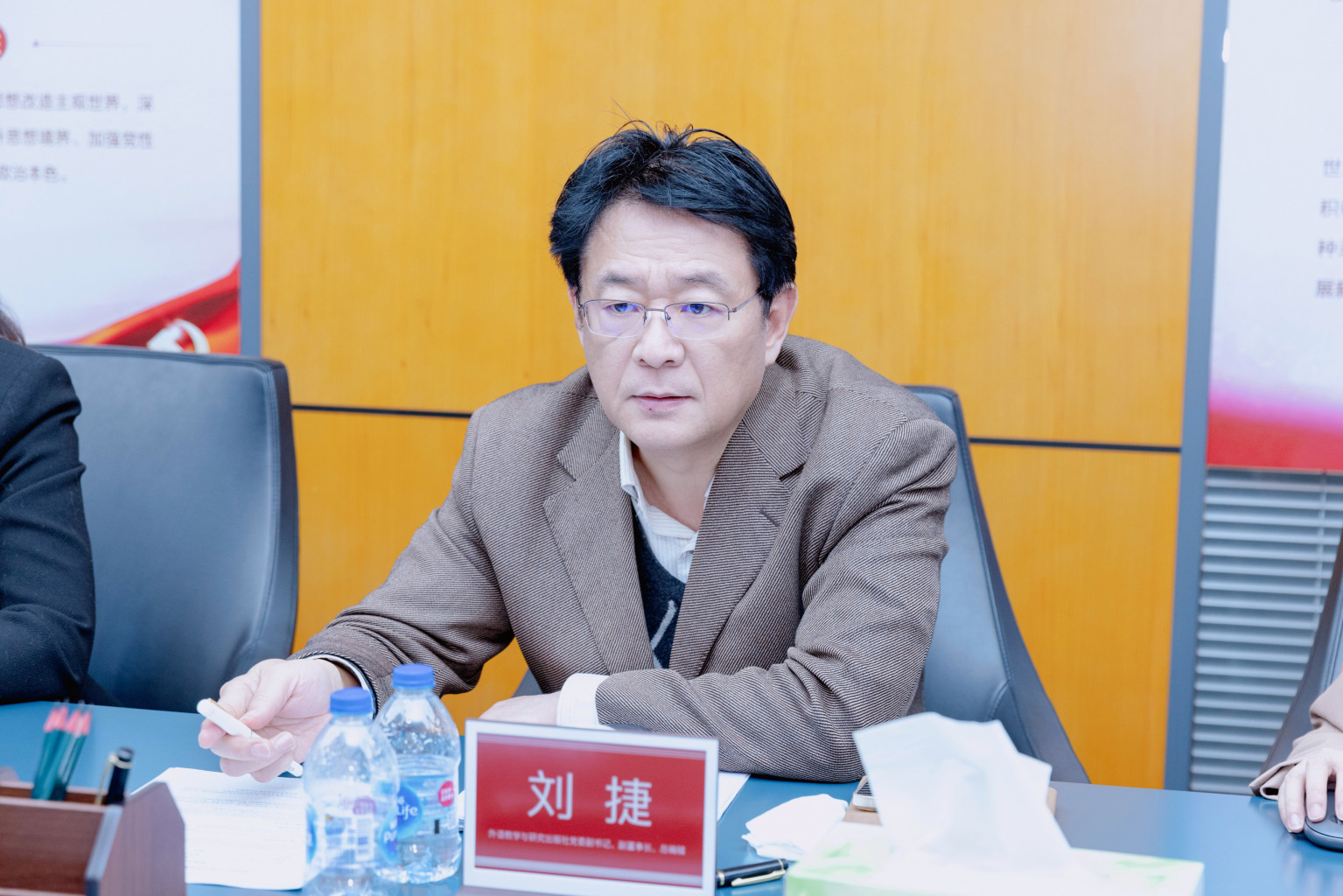 外研社党委副书记刘捷对苏春景副校长一行的到来表示热烈欢迎,并详细介绍了外研社的发展历程和业务情况,重点分享了外研社在高等英语、国际中文、职业教育等领域的教材体系建设与线上线下教学服务。