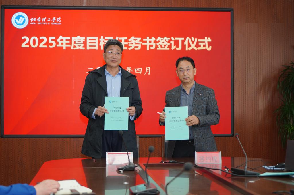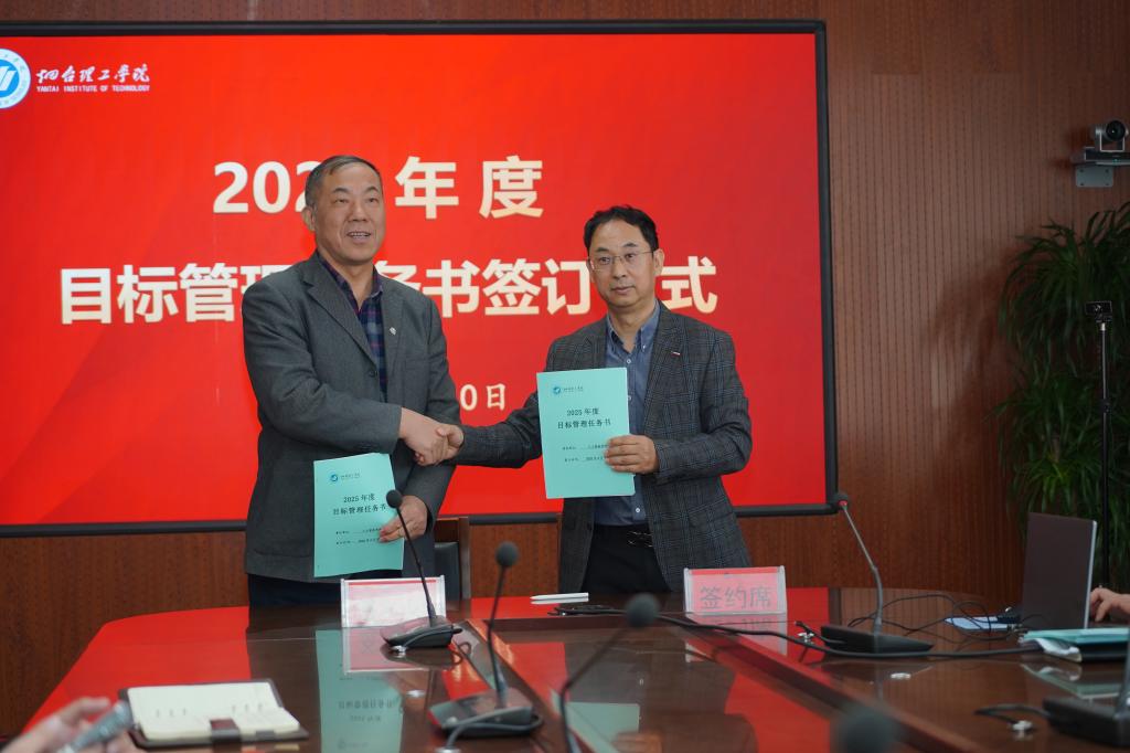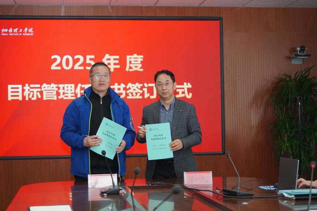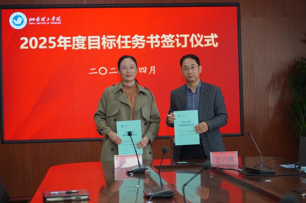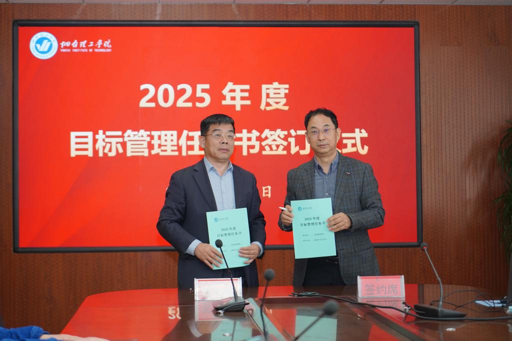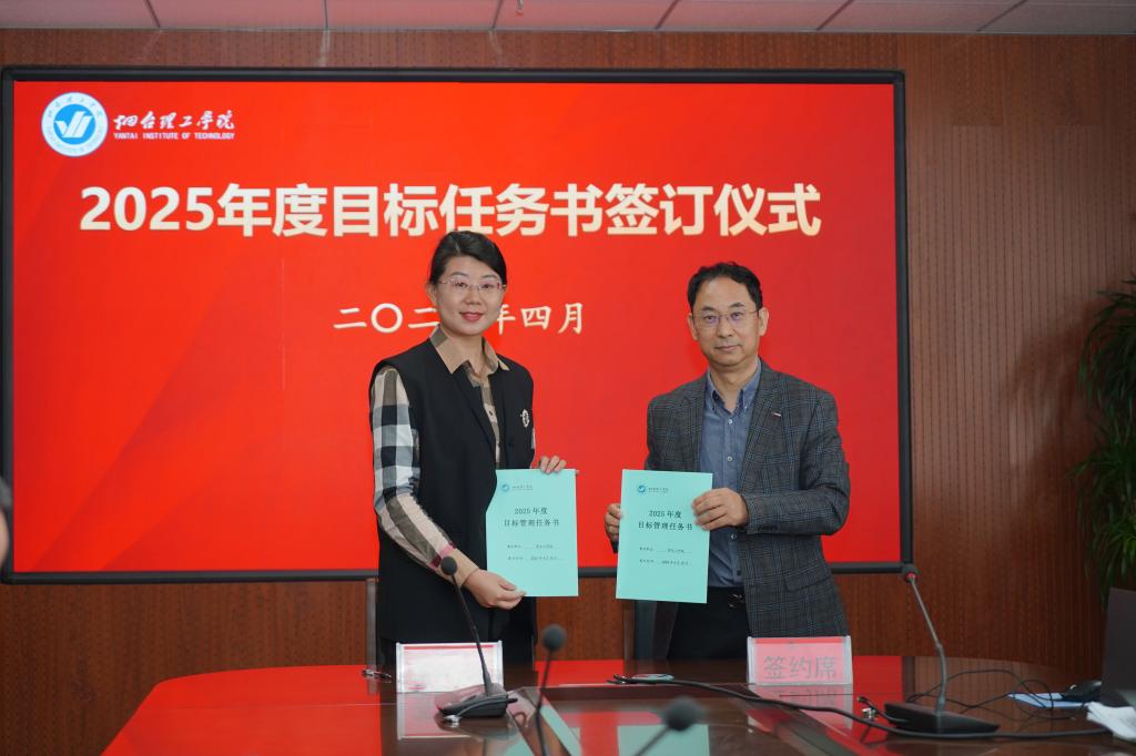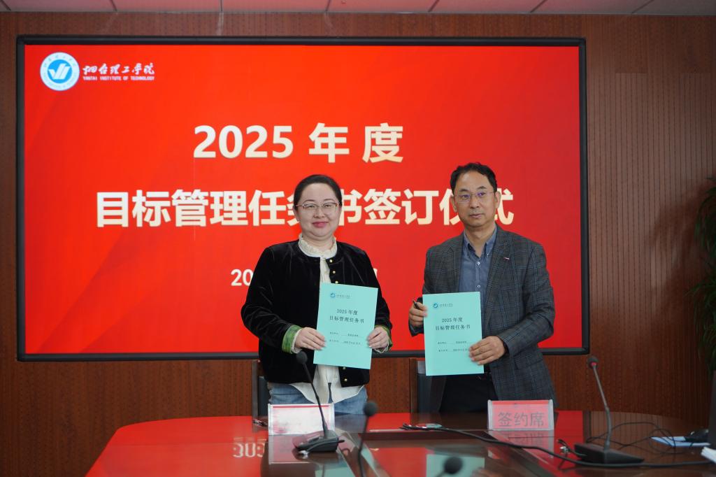 4月10日,学校在综合楼六楼视频会议室召开2024年度高质量发展绩效考核反馈会暨2025年度目标任务书签订仪式,全体校领导、各职能负责人、各二级学院院长、党总支书记出席会议,副校长苏春景主持会议。