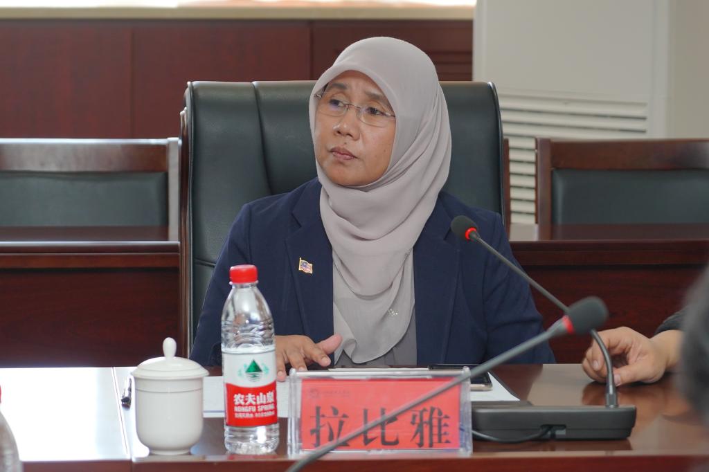 马来西亚国立大学信息研究院院长Rabiah Abdul Kadir博士致辞,简要介绍了马来西亚国立大学的发展、专业和办学成果以及国际排名声誉。期待双方更深层次的合作关系,以客座教授和访学交流等途径为师生提供更多更广的交流机会。