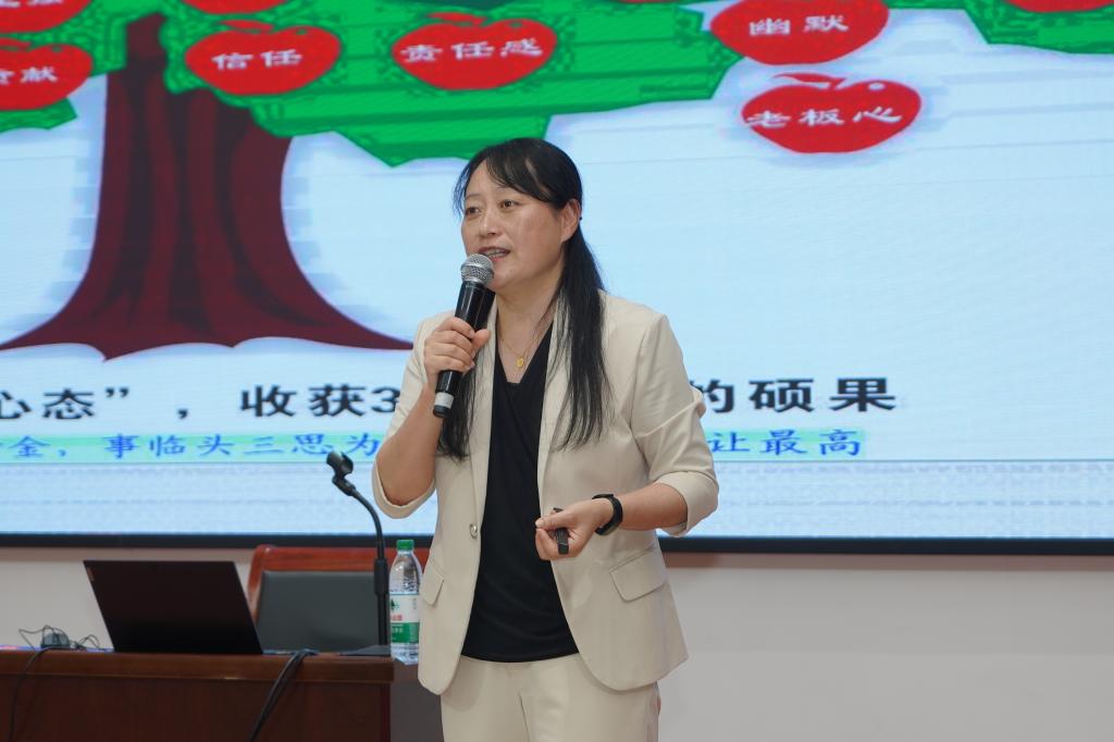 作为深耕教育一线30年的资深专家,孙娇老师以《向下扎根向内探索向光而行——教师专业发展“三向”修炼》为题,结合自身教育教学研究成果与育人实践经验,从四个维度阐释师德修养与教学创新的融合之道:一是“工作有心,做有趣的老师”,以积极心态发掘教育之美,做点燃学生热情的有趣之师;二是“教学有思,做有思想的老师”,通过观念转变与教学反思构建教育智慧,成为有思想深度的引领者;三是“手中有书,做学习型的老师”,以终身学习打开思维格局,打造学习型育人团队;四是“生活有色,做幸福的老师”,通过丰富精神生活与情绪管理,实现“工作再忙心不忙”的幸福教育人生。