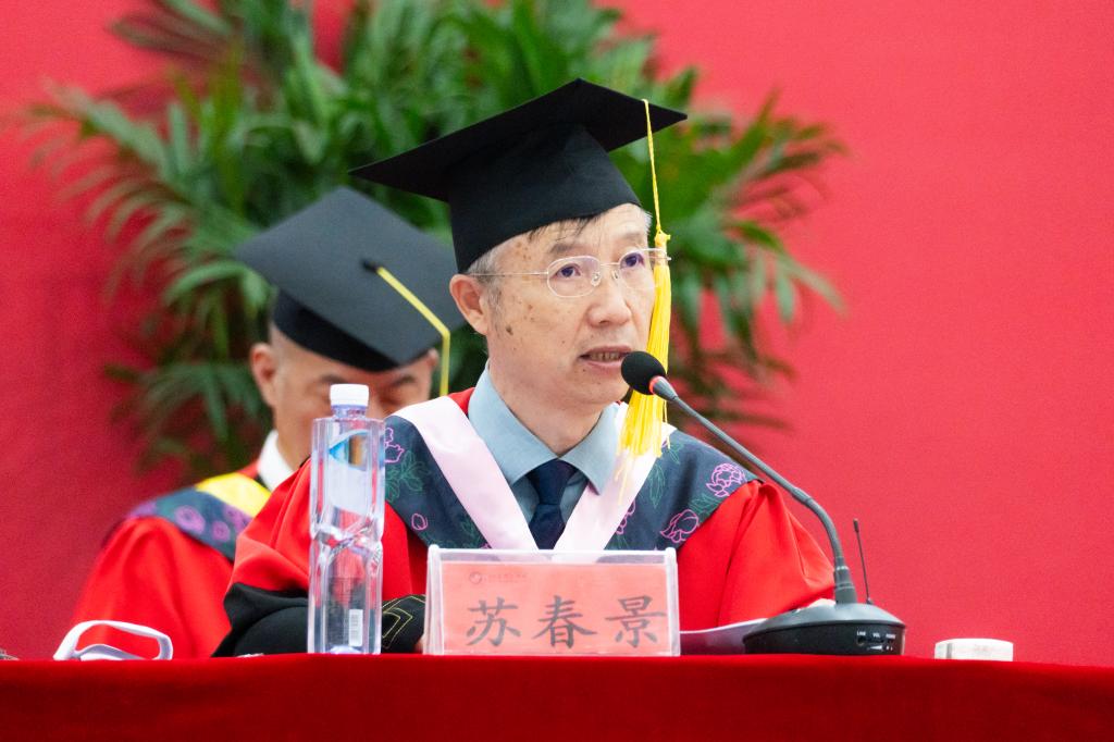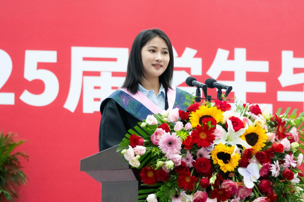 于光辉深情勉励同学们“不要慌,太阳下山有月光”,“人生不是结果的堆砌,而是过程的绽放”。无论将来是乘长风破万里浪,还是守一隅静待花开,都请享受每一段过程所带来的独特风景。他寄语广大毕业生,要厚植家国情怀,勇担时代重任,以涓滴“小我”成就澎湃“大我”,让个人价值在为国家为人民的奉献中焕发绚丽光彩;要提升终身学习能力,永葆创新活力,见微知著、理性思考,让求知欲成为对抗熵增的永动机,在时代变局中赢得发展的主动权制胜权;要培养抗逆生长韧性,努力超越自我,眼中有光、脚下有路,在困境中沉淀力量,在挫折中寻找通途,在奋斗中不断拉近理想与现实的距离,和光同尘、与时舒卷。