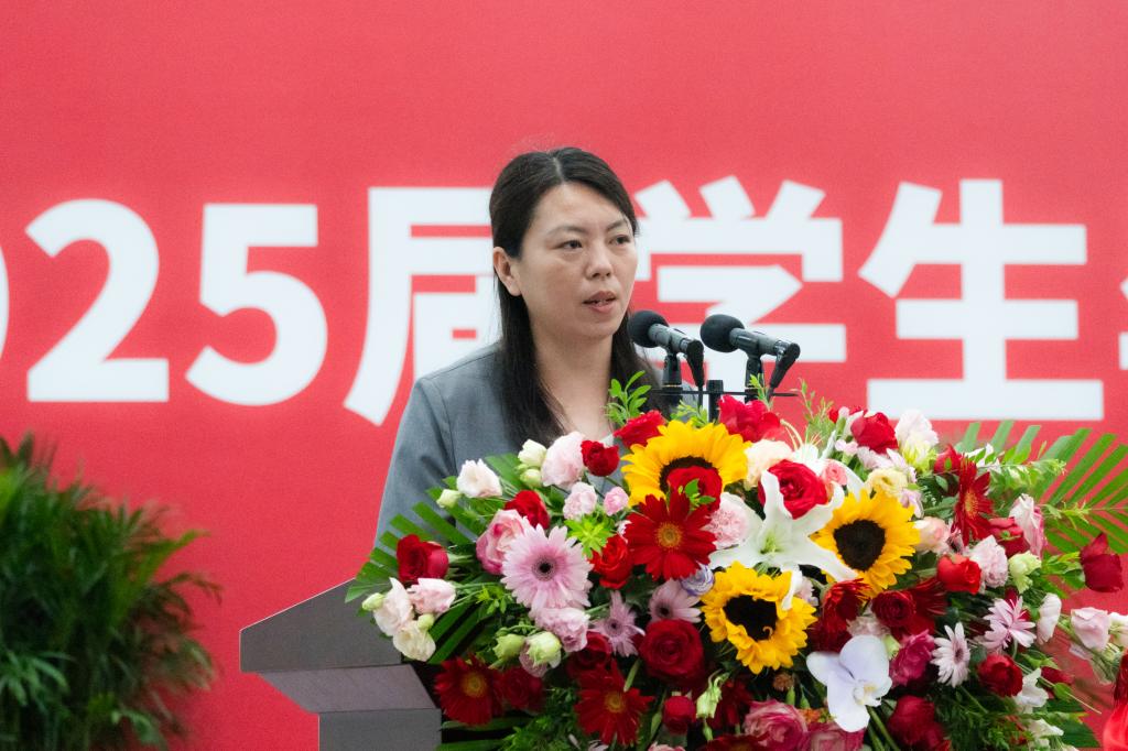 典礼上,学校为2025届校友工作联络员颁发聘书,他们将成为毕业生与母校之间情感与信息传递的桥梁。校友代表戚惠雯分享了在社会熔炉中历练的宝贵经验与人生感悟,为即将启程的学弟学妹送上温暖的“前行指南”。