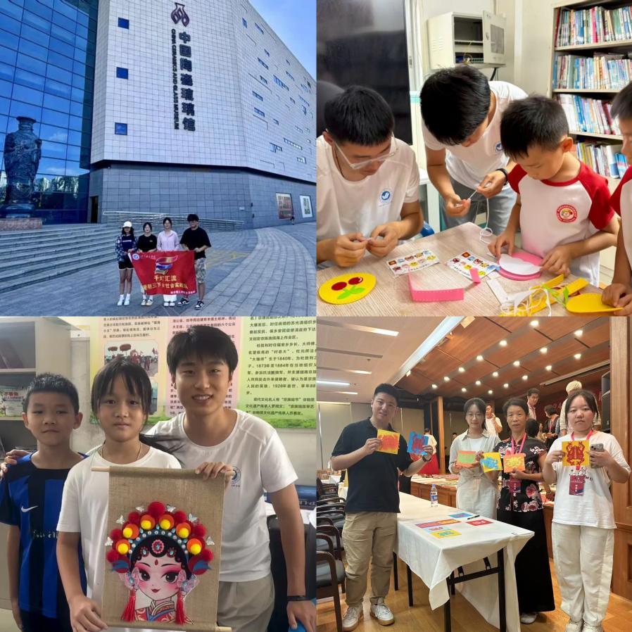 文法学院“千灯汇流”实践队走进淄博,探访陶瓷琉璃馆、齐文化博物馆与古车博物馆,感受从陶器到当代艺术的魅力,探寻齐文化科技成就与战国车马历史,触摸文明脉络。建筑工程学院“砼心振乡”志愿服务队赴广西万尾村,开展无纺布手工包、衍纸制作和石膏彩绘活动,与当地儿童互动,传递创意与温情;“山海同心”社会实践队深入该村,调研京族迁徙史、鱼露制作、耙螺技艺等,拜访独弦琴传承人,深化对民族文化的理解;“微光致远”志愿服务队在此开展国画、京剧脸谱教学,后赴广西民族博物馆探究铜鼓文化,架起文化交融桥梁。外国语学院“剪艺”志愿服务队走进东明县小学,以双语课堂教授剪纸技艺,助力非遗传承。