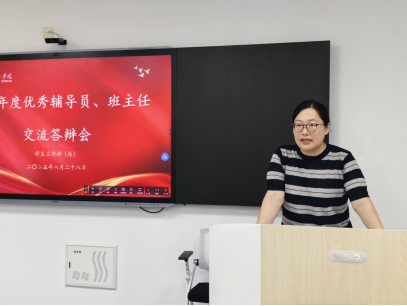 校长助理杜娟对本次培训进行点评讲话,对辅导员工作提出四点要求:一是强化团队协作,以思想政治教育为抓手,创新工作方法,提升育人渗透力,让“和合”理念成为凝聚师生力量的精神纽带。二是勇于担当,对标岗位要求,主动作为,将责任意识贯穿学生服务、学业指导、安全保障各个环节。三是构建“向政策文件学、向同事学、向自己学”的学习体系,精进业务,提升个人素养,打造一支专业过硬、素质全面的学工队伍。四是积极探索工作新思路、新方法,鼓励辅导员在日常工作中“发现、积累、沉淀”,将学生成长案例转化为育人成果,打造特色鲜明的育人品牌。