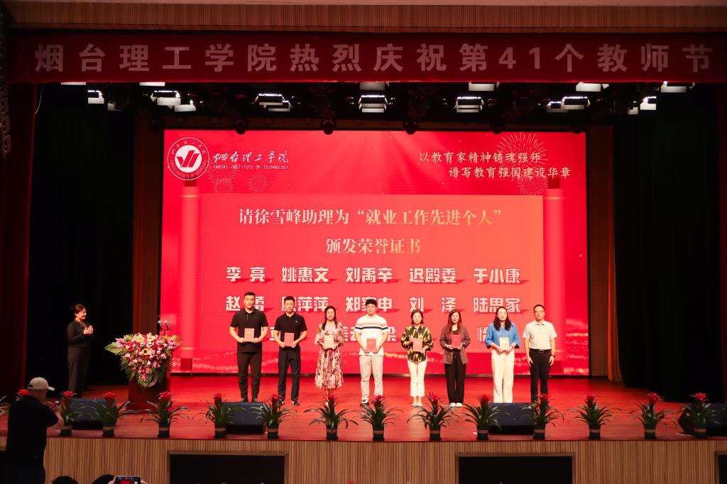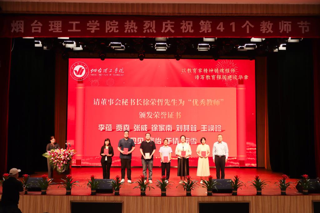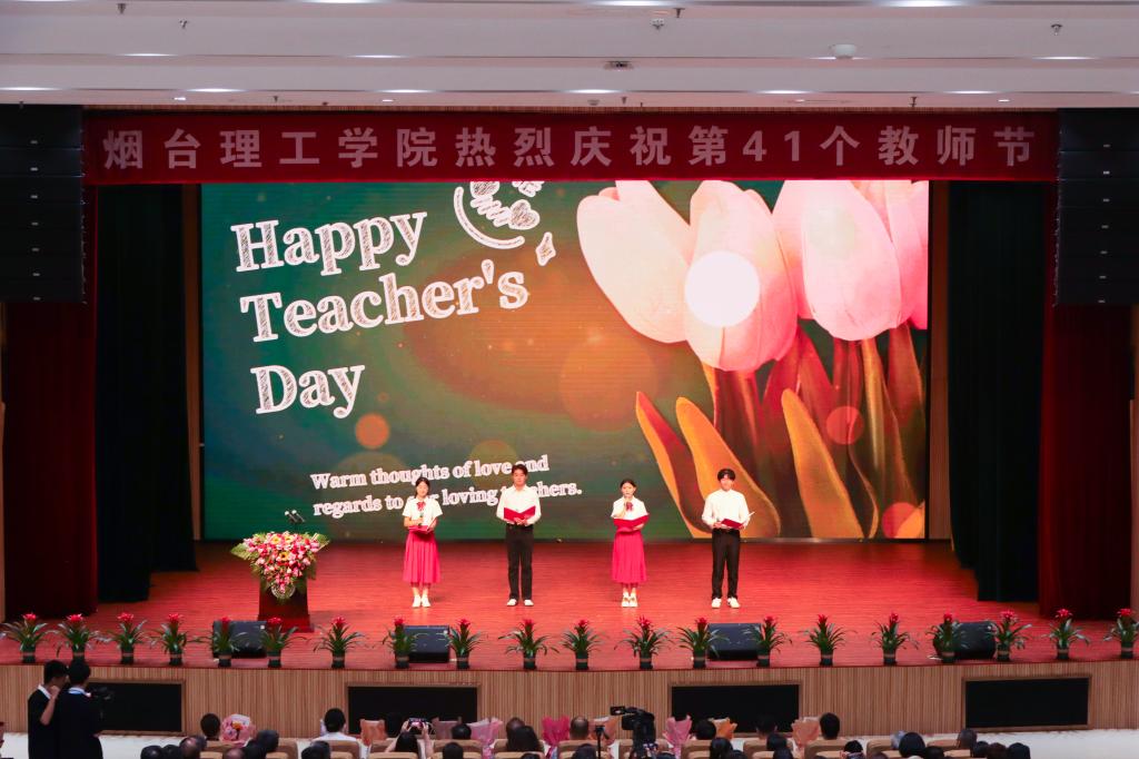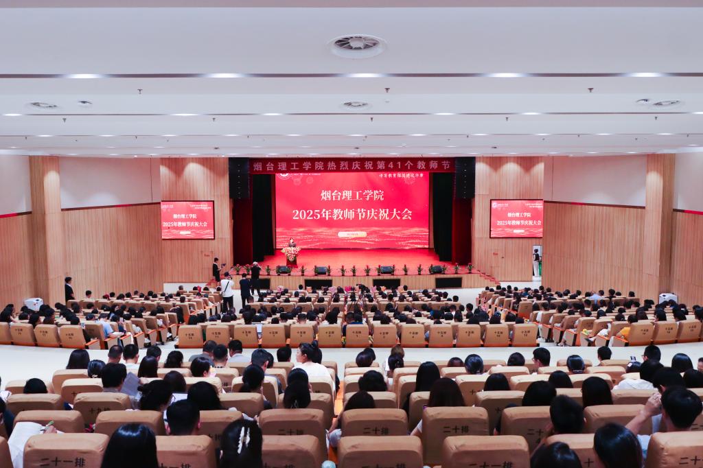 9月9日,在第41个教师节来临之际,烟台理工学院2025年教师节庆祝大会在综合楼一楼多功能厅举行。董事长辛军、校长于光辉、董事会秘书长徐荣哲、党委书记盛国军等校领导出席大会,与全校教职员工共同庆祝属于教师的光荣节日。会议由校长助理李洁主持。