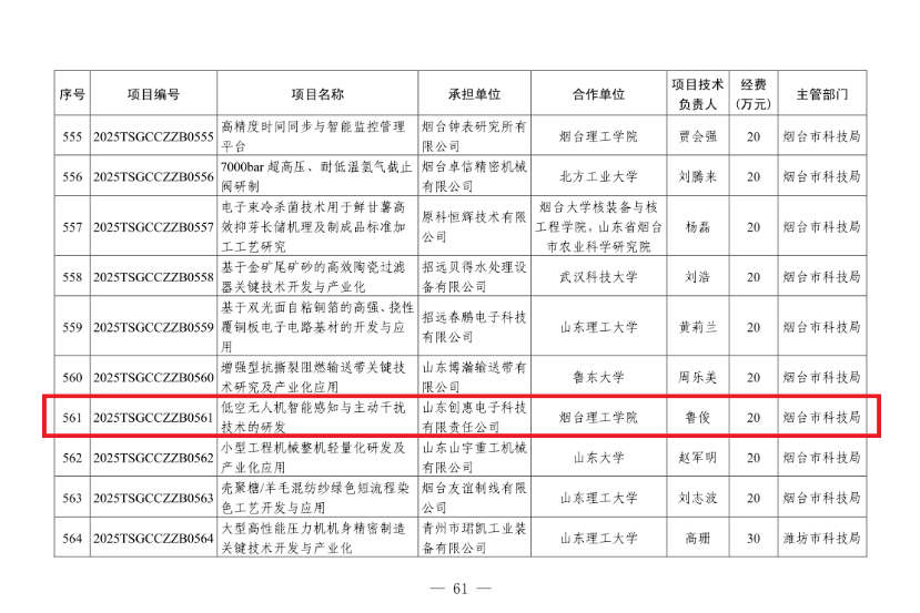 近日,从省科技厅获悉,由人工智能学院与山东创惠电子科技有限责任公司联合申报的“低空无人机智能感知与主动干扰技术的研发”项目,经过专家评审,成功获批2025年度省级科研计划“山东省科技型中小企业创新能力提升工程”立项。该项目的成功立项标志着人工智能学院在校企深度融合、产学研一体发展方向取得重要成果。