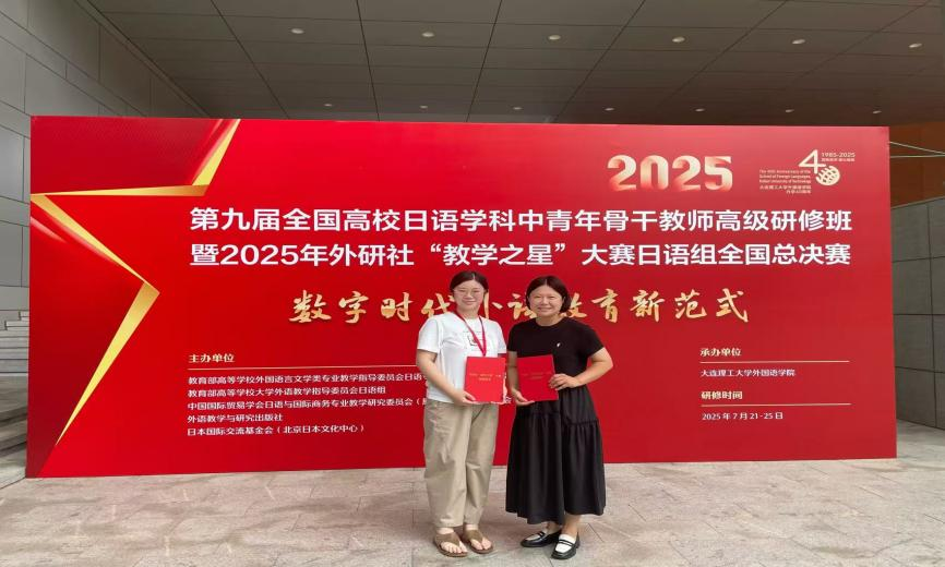 近日,2025年外研社“教学之星”大赛日语组全国总决赛落下帷幕,我校外国语学院教师团队吴周阳荣获全国决赛二等奖,孙小云荣获全国决赛三等奖,以实力书写教学新篇。