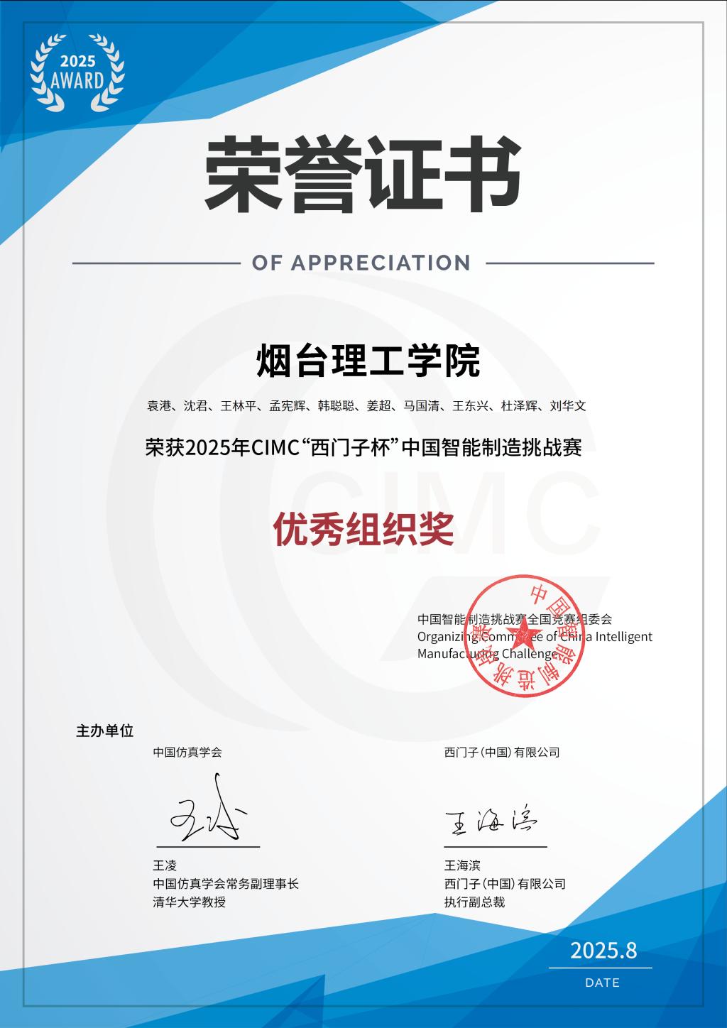 作为智能制造领域极具影响力的赛事,“西门子杯”中国智能制造挑战赛向来以赛题紧贴产业前沿、技术要求高、竞争激烈著称。在2025年“西门子杯”中国智能制造挑战赛(CIMC)“优秀、卓越组织奖”评选中,全国超百所院校参与申报,烟台理工学院凭借Campus-Hub校园学习中心在赛事组织中的卓越表现,荣获“优秀组织奖”。