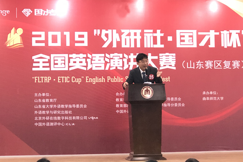 日前,由山东省教育厅和“外研社”共同举办的2019“外研社·国才杯”全国英语演讲大赛(山东赛区复赛)在曲阜师范大学落下帷幕。我院外1702-2班高山同学一路过关斩将,最终荣获山东省赛区特等奖,并将代表山东省参加全国总决赛。我院外语系连续三年选派学生参赛并三次获山东赛区特等奖。