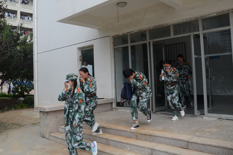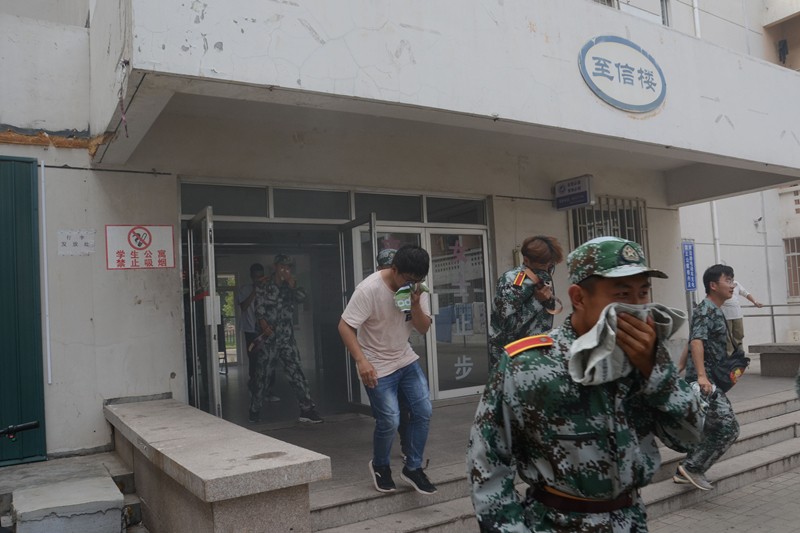 演练前,相关工作人员详细制定了此次演练活动的方案,明确了职责要求。此次消防疏散演练为模拟火灾现场采取实战方式,武装保卫部的工作人员在各公寓楼道内点燃了烟幕弹。随着警报的响起,新生迅速用湿毛巾捂住口鼻,快速逃离宿舍公寓到指定位置集合。在演练过程中,同学们有序前进、行动迅速。集合完毕后,各系清点人数、逐级向上汇报并对此次演练进行讲评。