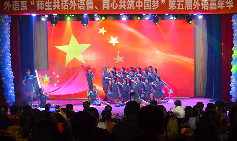 展外语风采,扬外语魅力。6月6日晚,外语系第五届“师生共话外语情 同心共筑中国梦”外语嘉年华在多功能厅举办。党委书记唐家弘、副书记李荣梅、院长助理尤敬法,学院管理总督导杜希成、工会主席史毅、学工部部长杜娟,外语系主任肖德法、党总支书记张廷国、副主任于巧丽以及外语系全体师生参加活动。