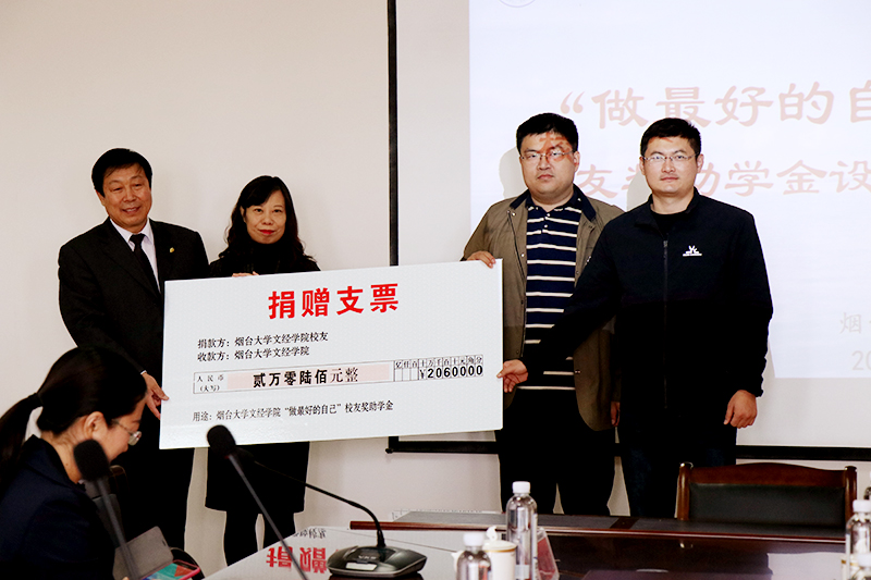 会上,院长助理莫红菊、杜希成代表学院接受捐赠,并向校友代表颁发了捐赠证书。