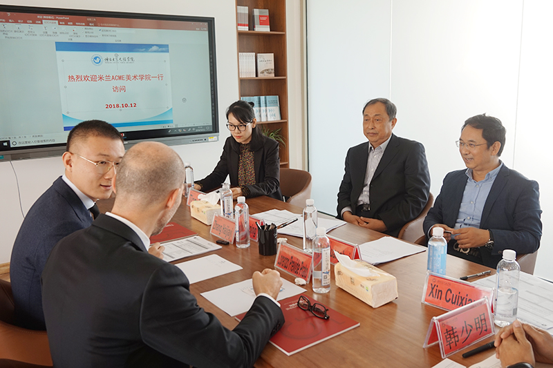 会谈中,双方达成意向,米兰ACME美术学院与我院建筑工程系视觉传达专业将开展深度合作,争取申报中外合作办学项目。