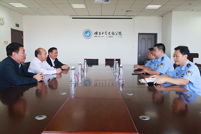 9月30日上午,烟台市莱山区公安分局副政委田维功及国保大队领导一行三人,来我院实地走访调研。学院党委书记唐家弘、院长助理尤敬法以及武装保卫部部长徐宝军等接待来访并参加座谈。