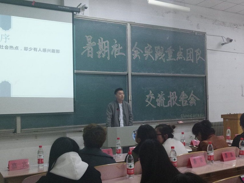 11月9日下午,院团委于二教209组织开展暑期社会实践重点团队交流报告会,机电系和会计系优秀团队的指导老师作交流发言,与在场的百余名学员分享实践成果和经验。