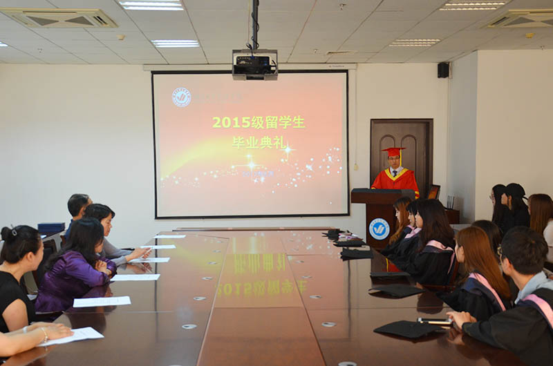 教师代表孔李茜向2015级韩国专升本留学生顺利毕业表示祝贺,希望同学们在新的岗位上继续努力,实现自己的梦想。留学生代表张芝恩说:“感谢两年来学院老师和同学们对我们的帮助,留学生活让我们收获了很多,并亲身感受到了博大精深的中国文化。”
