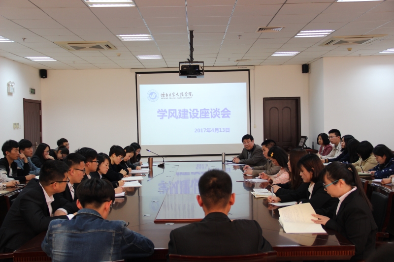 良好的学风是一个学校健康发展的重要保障,学工部积极倡导各系通过进课堂、进寝室、组织班会等多种形式,及时发现并解决问题,切实加强学生的思想教育,积极引导学生树立正确思想观念,共同营造良好的学风和校风。