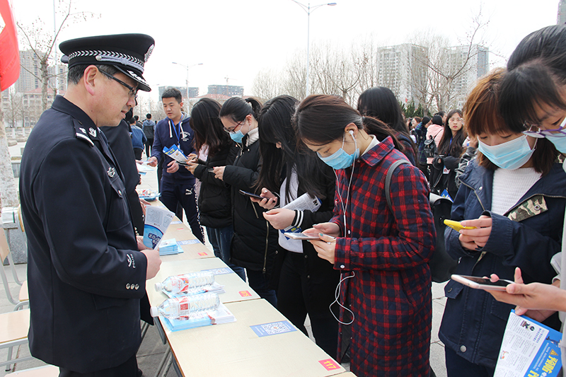 为切实提高在校大学生对电信诈骗手法的识别和防范能力,3月22日下午,我院联合莱山公安局国保大队深入校园,开展防范校园电信网络诈骗专题宣传教育活动。党委书记、副院长李相然,副院长王来武,院长助理尤敬法、莫红菊、杜希成,武装保卫部部长徐宝军以及各系党支部书记、相关职能部门负责人参加活动。