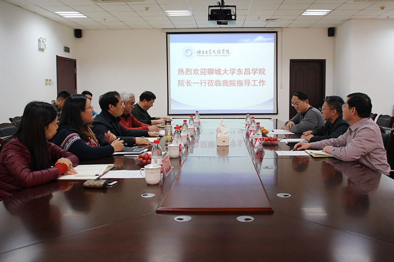 院长于光辉对东昌学院来我院考察交流表示热烈欢迎,并介绍了我院发展历程、办学体制、师资力量、人才培养和校园文化等方面情况。王相水院长对我院的热情接待表示感谢,双方并就学院发展目标定位、岗位设置、聘用、管理、绩效考核和学生教育管理、辅导员队伍建设及数字化校园建设等工作进行了深入交流。