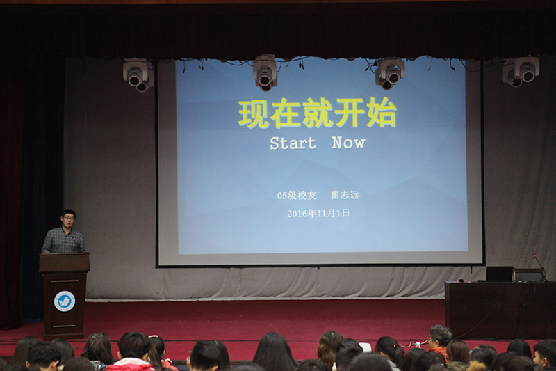 11月1日晚,“现在就开始”成长励志讲座于一教多功能厅举办。烟台大学文经学院校友、山东商务职业学院教师崔志远担任主讲,学院办公室主任史毅、管理系党支部书记杜娟出席讲座,管理系、文法系学生共同倾听了演讲。