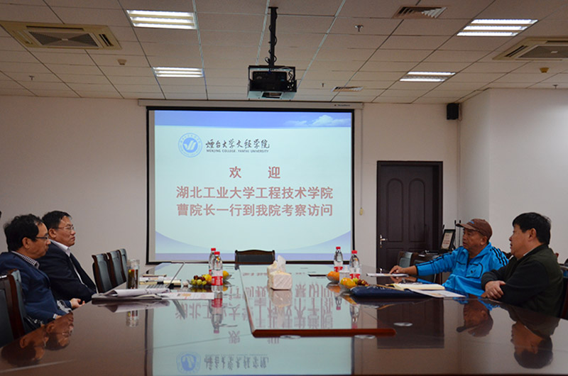 10月22日上午,湖北工业大学工程技术学院院长曹刚、副院长吴蔚青来我院考察访问。院长于光辉,党委书记、副院长李相然在六楼会议室热情接待了客人。