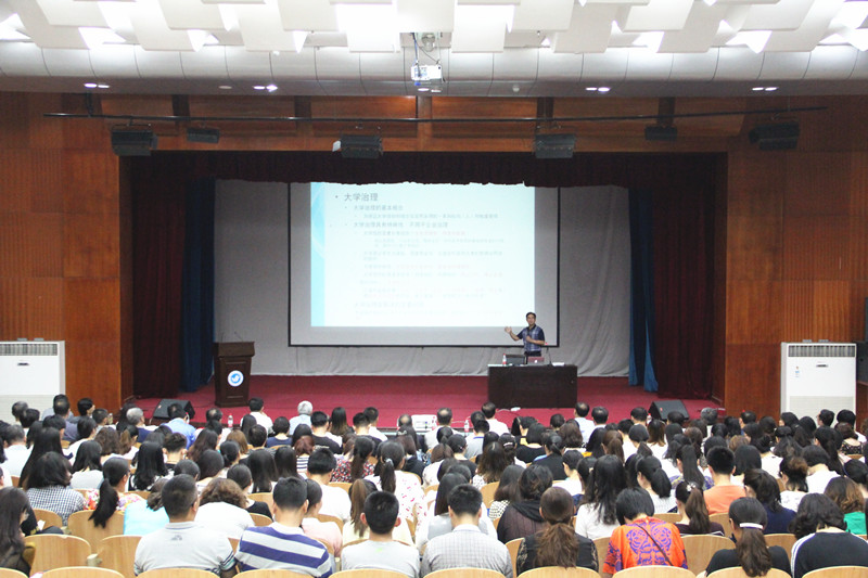 6月9日下午,院长于光辉在一教多功能厅为全院教职员工作了题为《当前高等教育综合改革的几个问题》的讲座。党委书记、副院长李相然主持会议。