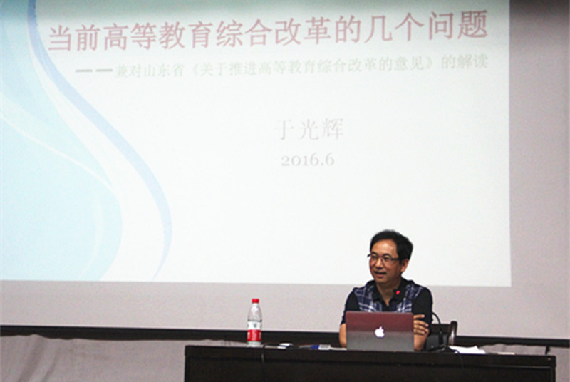近2个小时的讲座中,于院长把当前“高等教育改革发展中的热点难点问题”向广大教职员工娓娓道来,分析了“大学治理”“现代大学制度”“干部人事制度改革”“高水平师资和专业化管理队伍建设”等问题,并对山东省《关于推进高等教育综合改革的意见》(以下简称《意见》)进行了详细解读。