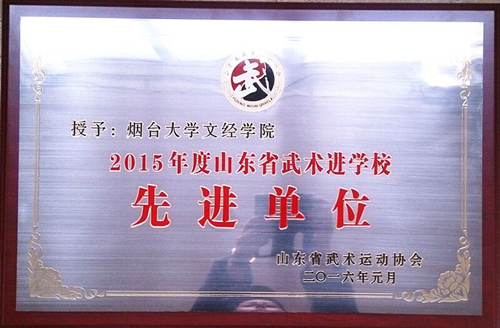 岁末年初,山东省武术运动协会2015年度工作总结表彰大会于1月20-21日在济南召开。烟台大学文经学院被授予山东省武术进学校先进单位,并在经验交流会上作为典型单位发言。