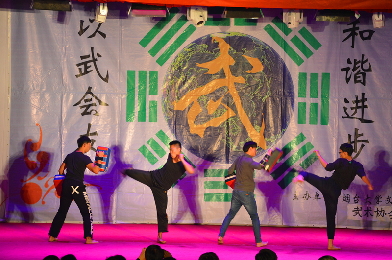 伴随着朗朗的读书声,行云流水的太极拳缓缓起势,《武韵》宏伟开场,国学与太极的交相辉映,让同学们感受到了传统文化的博大精深。王开文主任带来的螳螂拳,攻守兼备,纵横捭阖。太极部传帮带节目《梁祝》优雅潇洒,持剑而舞,《墨武》文武笔墨,书生侠气,魅力不减。双节棍部的《棍舞龙魂》灵巧多变,神采飞扬,刚毅勇猛中不失可爱俏皮。《太极球》黑白相间,如行云流水,绵绵不绝。巴西柔术部的表演技巧多元、精彩实用。散打部的《墨龙》以情景剧的形式向观众们展示散打的现实用途。太极部的保留节目《乾坤》开合之间,气贯长虹。跆拳道部的《跆风》技艺精湛,女队员的表现更是巾帼不让须眉。健美操部姑娘们迈着轻快活泼的舞步,带来欢乐的气氛感染着现场观众。