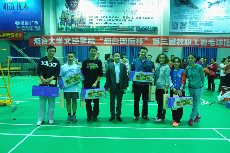 为丰富教职工业余生活,加强教职工之间的交流,11月20日,我院在烟台国际波力球馆举办“烟台国际杯”第三届教职工羽毛球比赛。学院副院长王来武,羽毛球协会会长韩少明,赞助商烟台国际经济技术合作有限公司总裁宋安纪、副总裁王卫国出席活动。