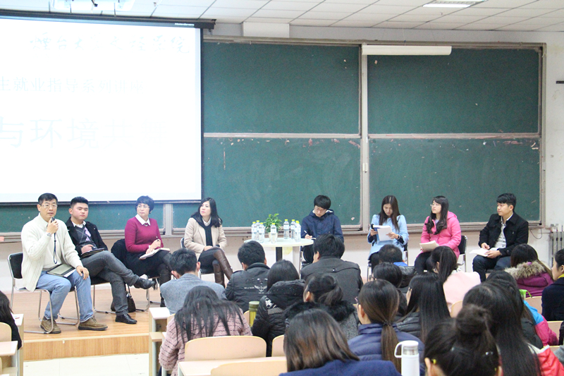 为帮助我院毕业生准确有效地确定就业方向,尽快在思想、行动上做好准备,指导毕业生走好从大学走向社会的重要一步,11月19日晚,由就业指导中心主办的“与环境共舞”主题毕业生就业指导讲座在二教115开讲。烟台友信液压有限公司总经理孙云,中国电信烟台分公司副总经理王宁、人力资源招聘专员孙燕飞、校园市场部刘飞等企业管理者走进讲堂,与毕业生学子面对面,结合现实社会环境共同探讨就业问题。