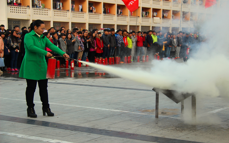 武装保卫部张洪瑜就“如何正确拨打119火警电话”作了针对性回答,他讲到,面对突发事件一定要冷静镇定、不慌乱,采取正确的自救、求救措施。消防负责人员讲解并示范了干粉灭火器的操作和消防栓的使用。在场师生亲自体验了现场灭火的过程,面对熊熊燃烧的火堆,学生表现沉着,熟练地按照灭火步骤和方法,将大火成功迅速扑灭。武装保卫部部长徐宝军希望通过此次活动,使同学们提高火灾防范意识,增强自救互救能力。