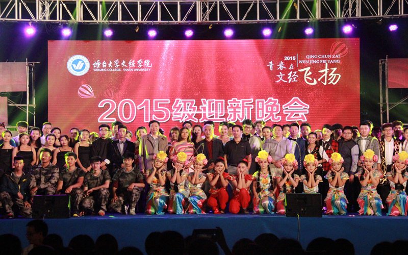 花样年华正青春,缤纷大学初起航。9月24日晚,烟台大学文经学院2015级“青春在文经飞扬”主题迎新晚会在体育场举行。院领导于光辉、李相然、王来武、刘孔庆、李荣梅、尤敬法,各系部以及职能部门负责人,与2015级全体新生共聚一堂,共享精彩盛宴。