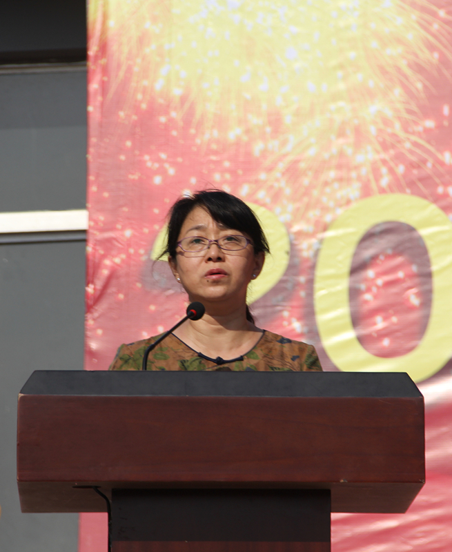 会计系主任孙桂娟作为教师代表发言,她向新生提出两点要求,一要学会独立,二要学会学习,她希望新生能以敬业务实的态度对待大学的生活和学习,更好地发展自己。随后,机电工程系2015级王向奇同学与经济系2012级杨晴晴同学分别代表新老生代表进行发言,共同寄望新生要始终牢记“自强、博识、求新、致道”的校训,并倡议全体新生明确大学目标,并为之不懈奋斗。
