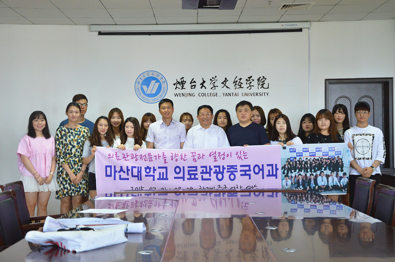 近日,我院再次迎来了韩国马山大学医疗观光中国语系的14名短期留学生,他们将在烟台大学文经学院进行为期一个月的夏季语言研修。7月3日上午,学院于二教六楼会议室举办留学生欢迎会,党委书记、副院长李相然教授,韩国马山大学医疗观光中国语系全元柱教授,学院对外交流合作部韩少明部长出席仪式。