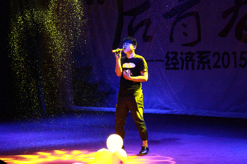 晚会在激情四射的开场舞《企鹅哥哥》拉开帷幕。本次晚会分为Freshman、Sophomore、Junior和Sunior四幕,旨在展现多姿多彩的青春四年画面。小品《文经爱情故事》、相声《王阿迪是神马》笑点多多,嗨翻全场;应邀参加晚会的经济系往届校友深情献唱《张三的歌》、《突然好想你》、《屋顶》以及《海阔天空》,勾起了所有毕业生的青春过往;舞蹈《咏春》中,舞者身穿旗袍、手拿纸扇,一举一动尽显唯美;乐器合奏《侗乡之夜》古风浓郁,意境悠扬;经济系教师更是唱功了得,歌曲串烧赢得阵阵掌声。