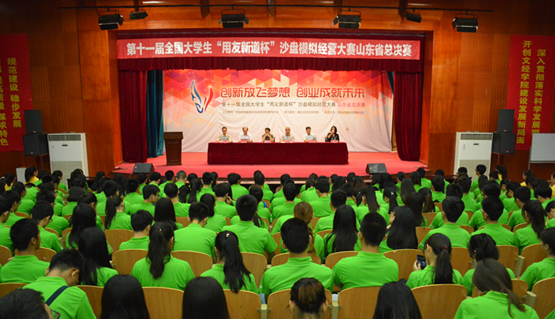 朝晖暮霭,千岩竞秀,天之骄子相聚黄海之滨;开拓创新,精益求精,沙盘模拟再创不朽辉煌。6月6-7日,第十一届全国大学生“用友新道杯”沙盘模拟经营大赛山东省总决赛在烟台大学文经学院拉开帷幕,来自全省近30所本科院校的70支队伍,约500余名师生齐聚文经学院,决胜于山东省总决赛的赛场。