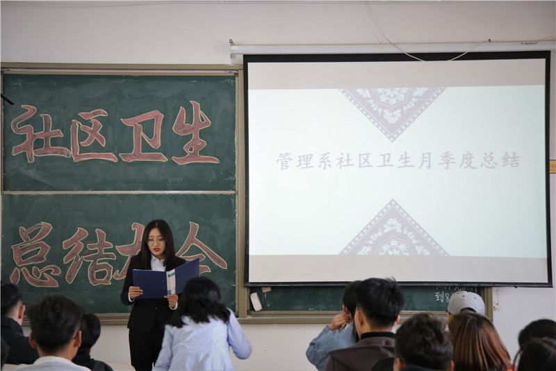为强化学生安全文明教育,提高同学们自主自理能力,营造整洁有序的生活环境,10月14日,管理系于一教119教室召开社区卫生安全月度总结大会,管理系学生会主要学生干部出席,19级学生代表积极参加。