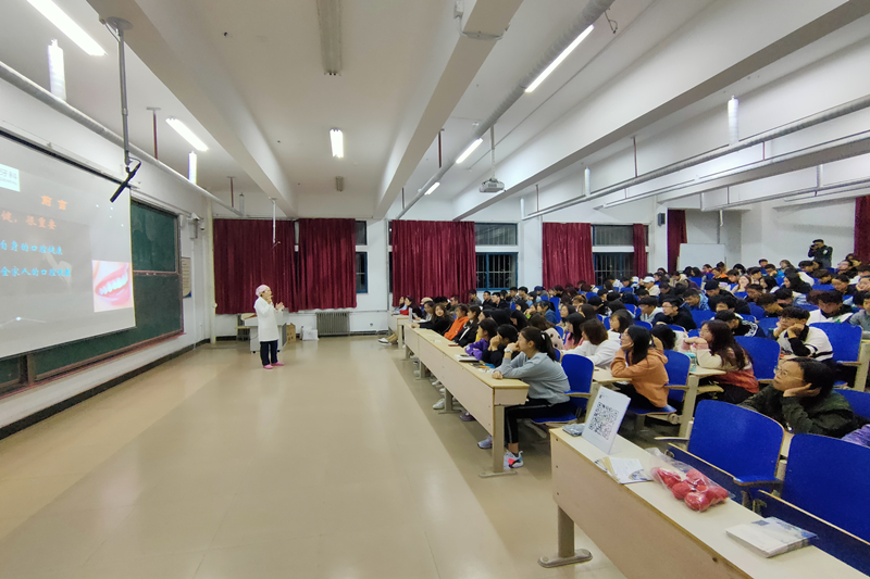 本次讲座,金双双共从三个方面对于口腔保健知识进行讲解。首先,她阐述了不注重保护牙齿的危害并由此指出口腔保健对于青少年的重要性。紧接着,她展示了牙齿示意图,着重讲述了智齿、阻生齿及龋齿等青少年比较常见的口腔疾病并指出了这些疾病的形成原因。随后,金双双以牙龈出血为例,讲述了牙周病的形成与危害,讲解了正确刷牙以及使用牙线的方法。提到青少年正畸问题,她表示,不应该在发现口腔问题后才去治疗,肯定了预防的重要性,提出要做好“防、管、治”三个方面的工作。她强调,年轻一代一定要注重保护牙齿,做好口腔保健工作,尽早防治牙病。讲座现场气氛热烈,学生都表示受益匪浅。