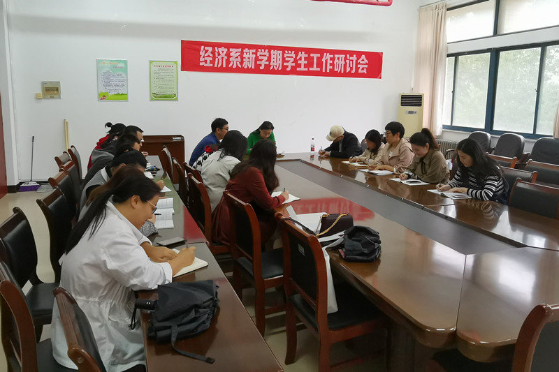 10月10日,经济系学生工作研讨会在一教四楼会议室召开,党总支书记杨帆,全体辅导员、班主任参加本次会议。