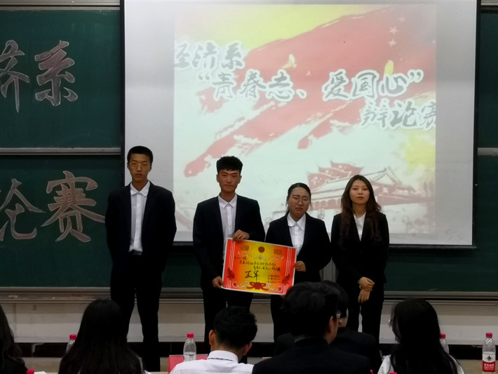 为了锻炼经济系学生的思辨能力,提高经济系学生爱国意识,加强经济系优良学风建设和文化建设。经济系于5月30日在一教105教室 开展“青春志,爱国心”辩论赛决赛。