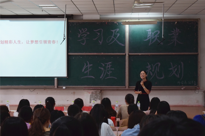 当代大学生在具备基本专业学习技能与素质外,是否掌握各种社会职业技能是学生综合素质考量的重要依据,努力实现学生的自我成长成才,是学生不断为之努力的追求也是每一位教师的共同教学职责。为此,9月14日上午,外语系于二教115组织召开了针对新生的职业生涯规划入学教育专题讲座,帮助学生为未来的职业生涯做好规划。外语系副主任于巧丽老师担任此次讲座的主讲人。