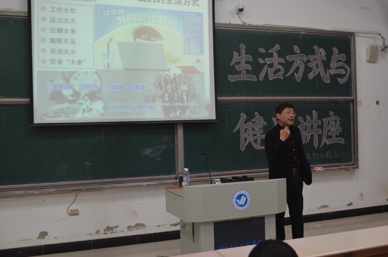本次座谈会主要从健康与生活方式、健康的生活方式及好习惯远离亚健康三部分展开。贺教授强调,人体的健康问题不仅受父母遗传、生活环境、个人因素以及饮食习惯等多方面的影响,还源于错误的生活方式。无限制地熬夜,抽烟酗酒等不良生活方式,过度疲劳、长期体力透支都是引发疾病、甚至导致死亡的重要诱因。贺教授提出二十四字箴言,“合理膳食,适量运动,戒烟限酒,心理平衡,生活规律,保健治疗”,以此呼吁学生们要养成良好的生活习惯、注意合理的膳食搭配,有规律的生活才能保持青春活力,健康快乐。