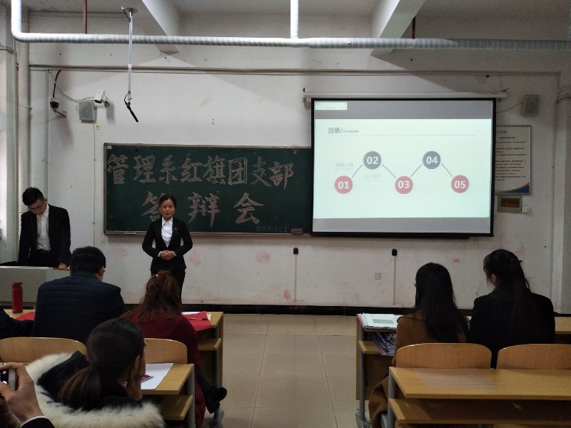为深入贯彻“一学一做”思想精神,加强基层团组织建设,4月6日,管理系于一教118教室举行红旗团支部答辩会。管理系党支部书记杜娟,团总支副书记李昆峰和4名辅导员老师参加并担任评委。