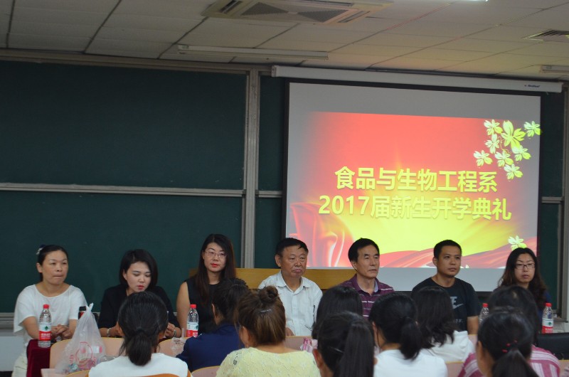 典礼伊始,团总支书记王晶首先向2017级新生表示衷心的祝贺和热烈的欢迎,为食品系注入了新鲜血液。王少辉书记详细地介绍了食品系师资力量、学科体系、机构设置以及办学特色和学科优势,提出食品系学风考风优良,考研率呈直线上升。他指出,大学教育是高等教育的重要部分,希望2017级新生珍惜进入大学殿堂深造的机会,立足新起点、迎接新挑战、力争创新成绩。