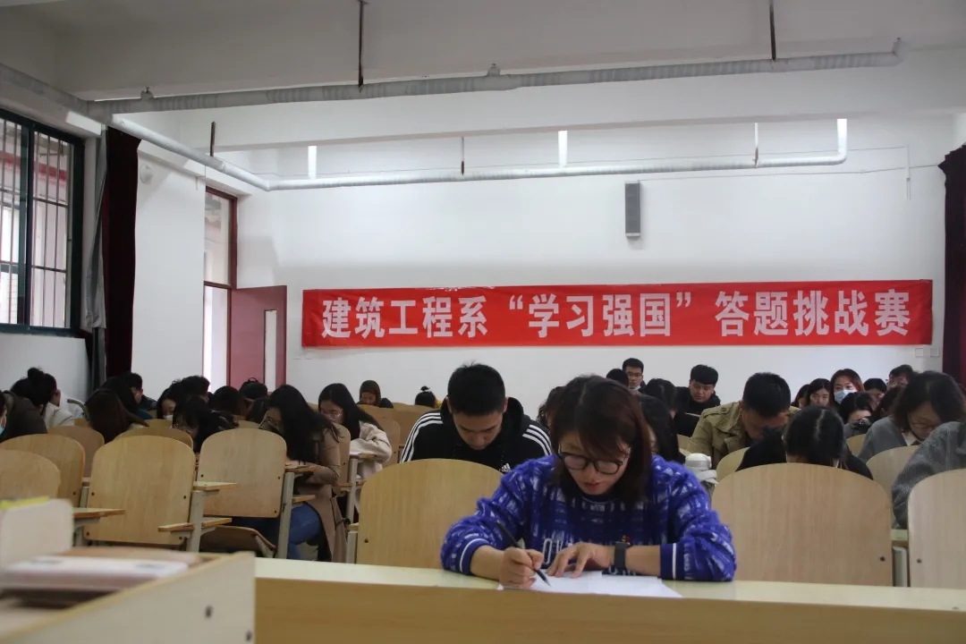 为深入贯彻落实习近平总书记关于加强学习、建设学习大国重要指示精神,建好、办好、用好“学习强国”学习平台,进一步提高广大党员群众学习积极性,近日,在院党委号召下,建筑工程系党支部积极组织开展了“学习强国”答题挑战赛活动。
