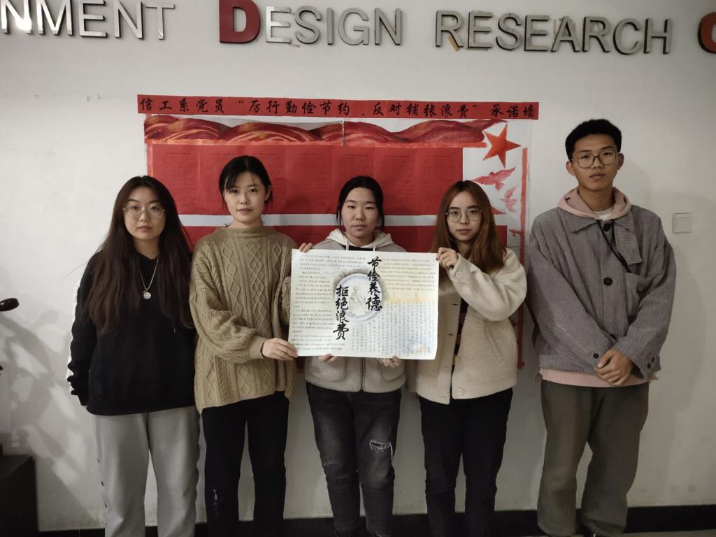 信1901-1班和信2001-1班通过宣传板报传达了粮食的来之不易“谁知盘中餐,粒粒皆辛苦”的思想。信1902-1、1902-2班的宣传板报通过讲述毛主席的节约小故事,来号召同学们养成勤俭节约的好习惯。各班级成员齐心协力利用图文并茂的形式展现了主题思想,使学生们牢固树立了节约光荣、浪费可耻的观念,在我系师生中起到了很好的教育宣传效果。