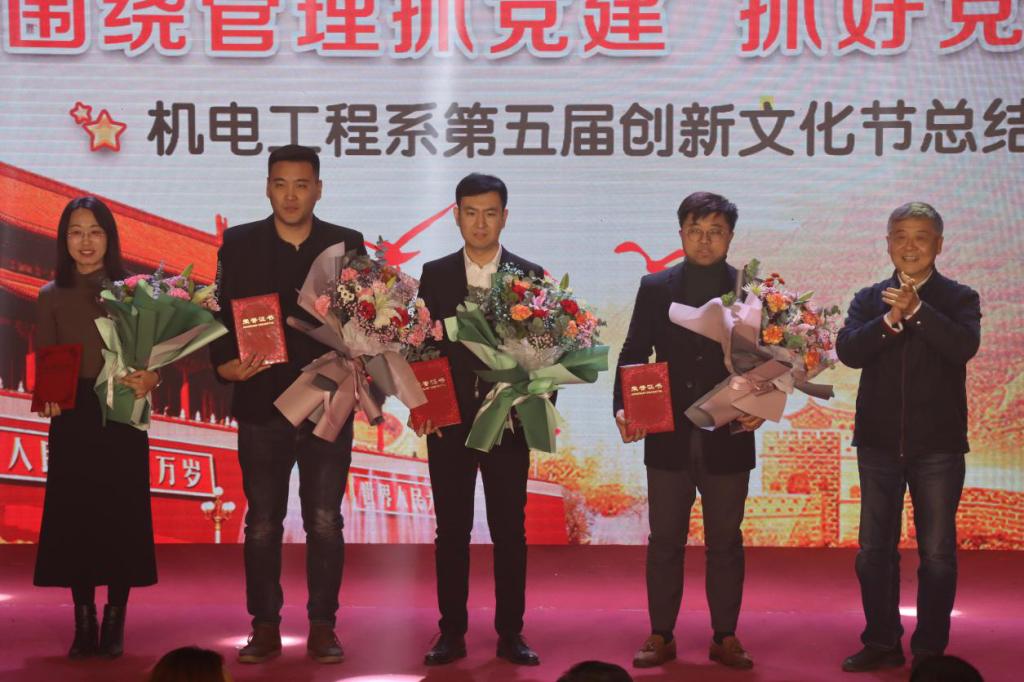 三尺讲台,染苍苍白发,育桃李天下;寒来暑往,撒点点心血,教九州才子,为了表达对老师们辛勤教诲的感恩,同学们深情的为老师献唱了歌曲《平凡天使》。通过视频“党建+师德师风成果展示”表彰了“感动机电人物”王卓教授和转设工作中做出贡献的老师。接着,通过视频“党建+就业创业成果展示”,体现了机电师生的就业创业历程。并为在就业创业方面表现突出的先进教师进行颁奖。激励了机电学子上下求索,开拓创新的机电奋斗精神。最后,情景朗诵《人民至上》点名时代主题,为本次机电创新文化节画上了圆满的句号。