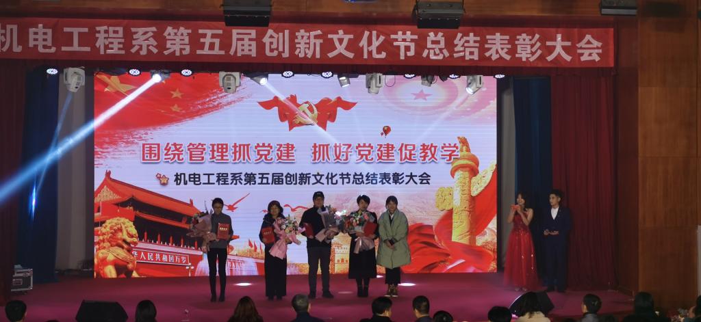 为展示机电系科技创新作品,继续发扬机电创新精神,丰富校园文化活动,以青春之活力献礼建党九十九周年。12月22日下午,机电工程系于一教207举办“围绕管理抓党建,抓好党建促教学”第五届机电创新文化节。副院长辛连军,工会主席史毅,组织统战部部长张琼玉,招生就业部部长李洁,院团委书记申海滨,学工部副部长王明印,机电系全体师生共同参加本届创新文化节总结表彰大会。